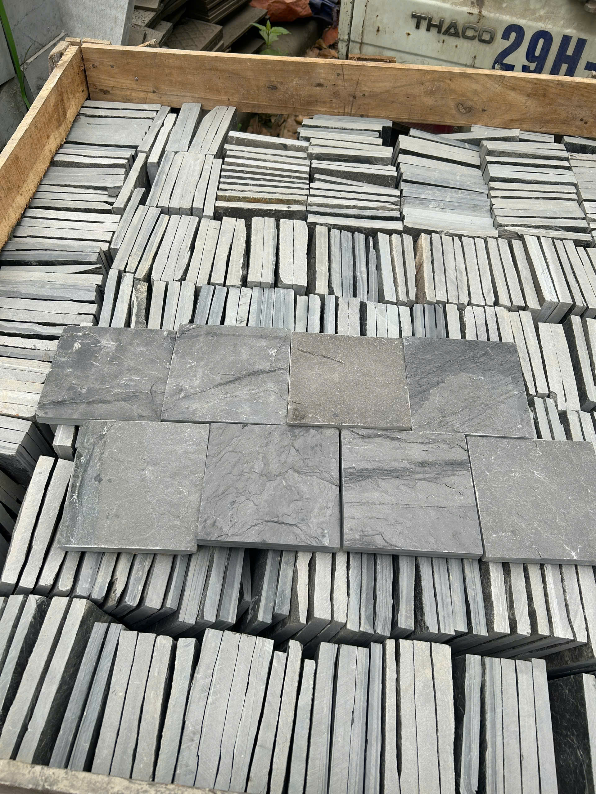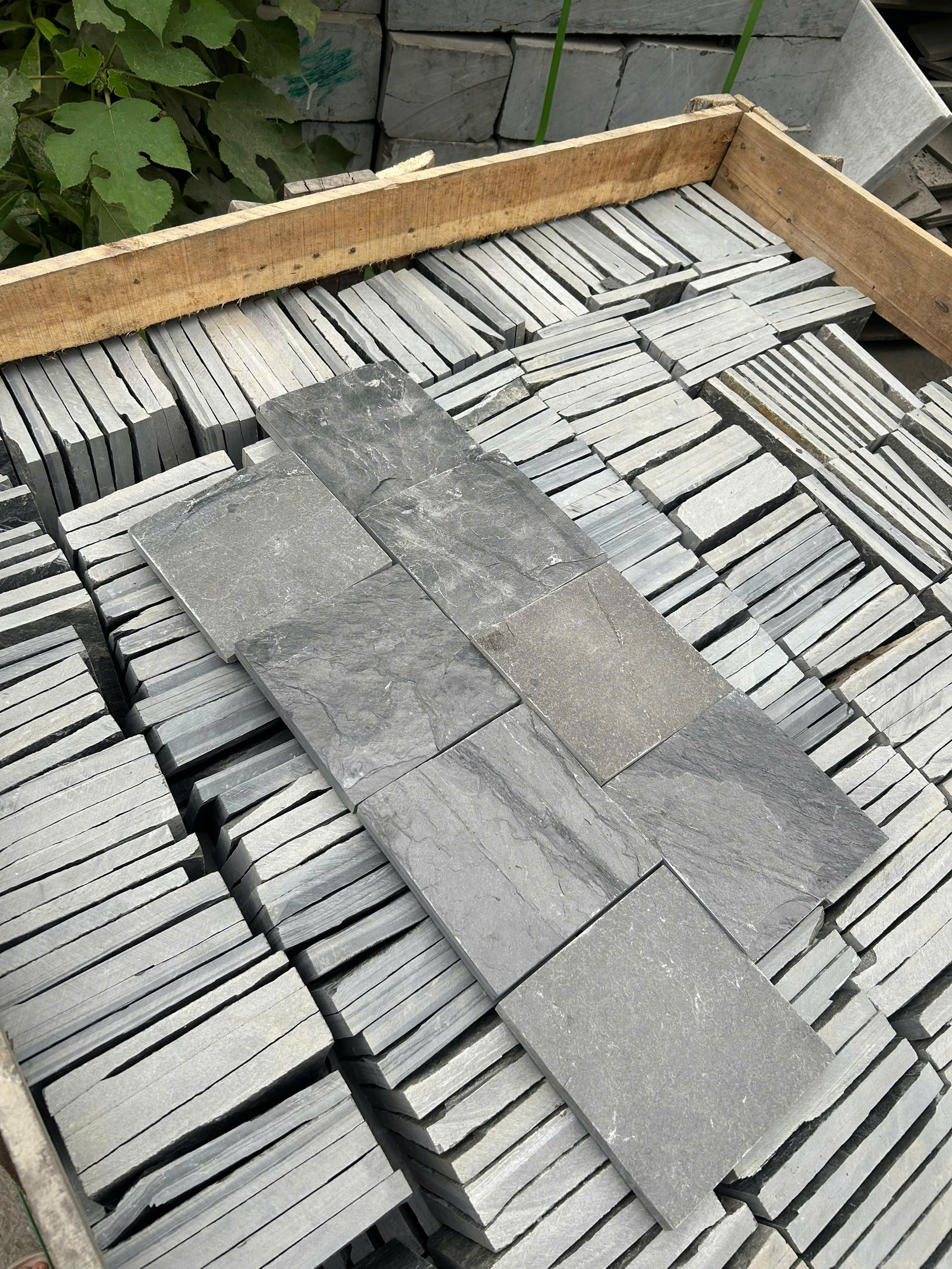 Vẻ đẹp mộc mạc, độc bản: Mỗi viên đá chẻ đều có vân đá và sắc thái màu sắc riêng biệt. Khi lát sân, chúng tạo nên một tổng thể bề mặt có chiều sâu, mang đậm nét hoang sơ của núi rừng.