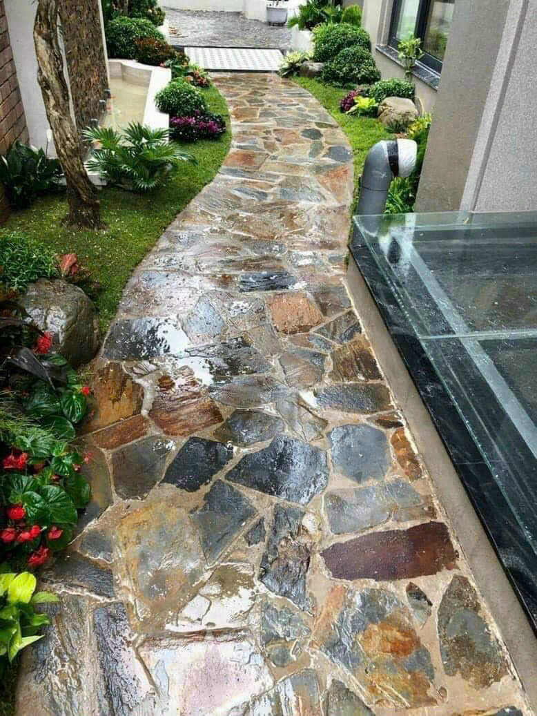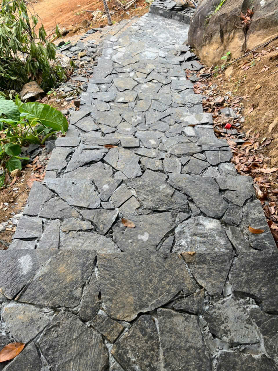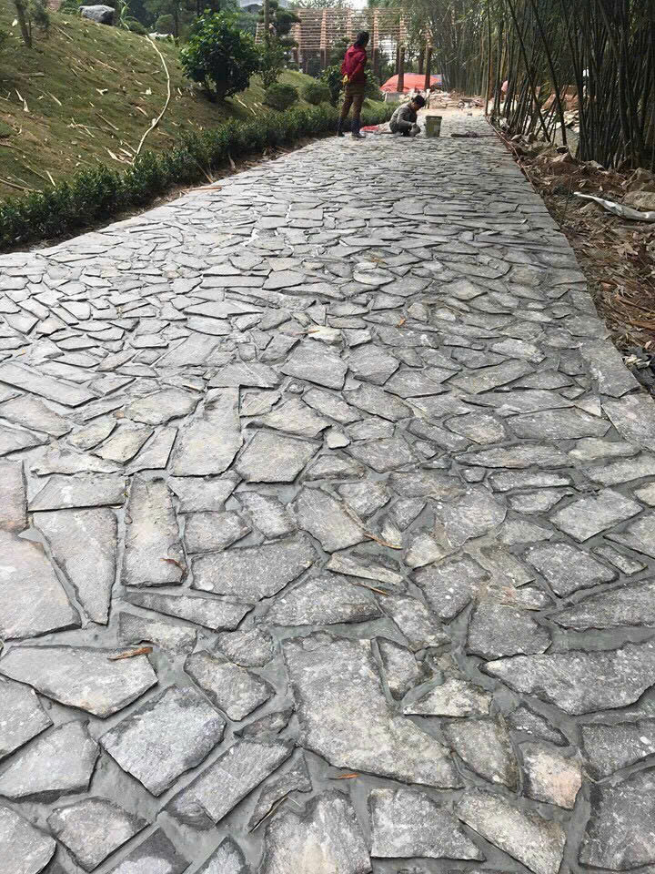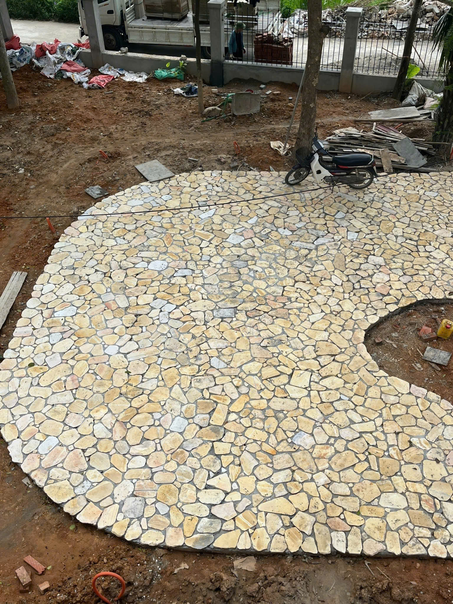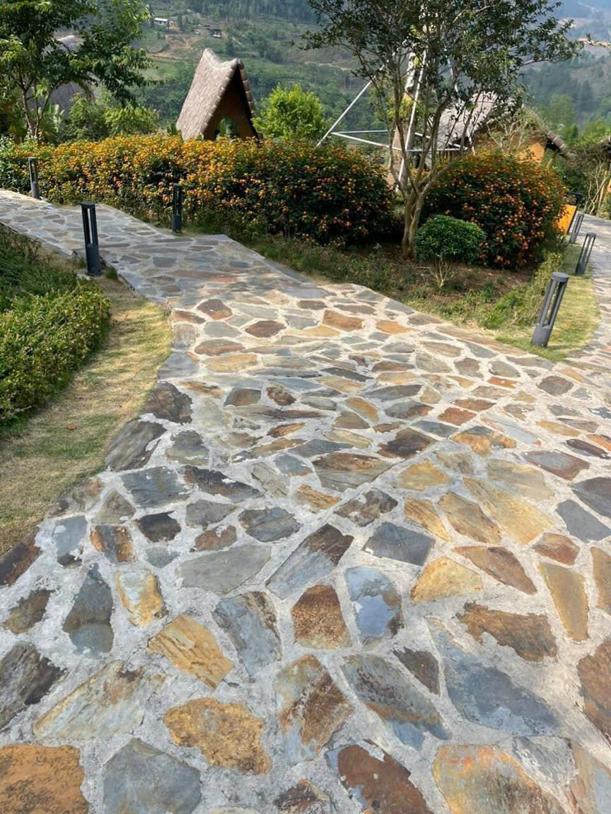 Mỗi viên đá có hình dạng khác nhau, tạo nên tổng thể độc đáo, không bị trùng lặp. Đặc biệt phù hợp với phong cách sân vườn, resort, quán cafe sân vườn.