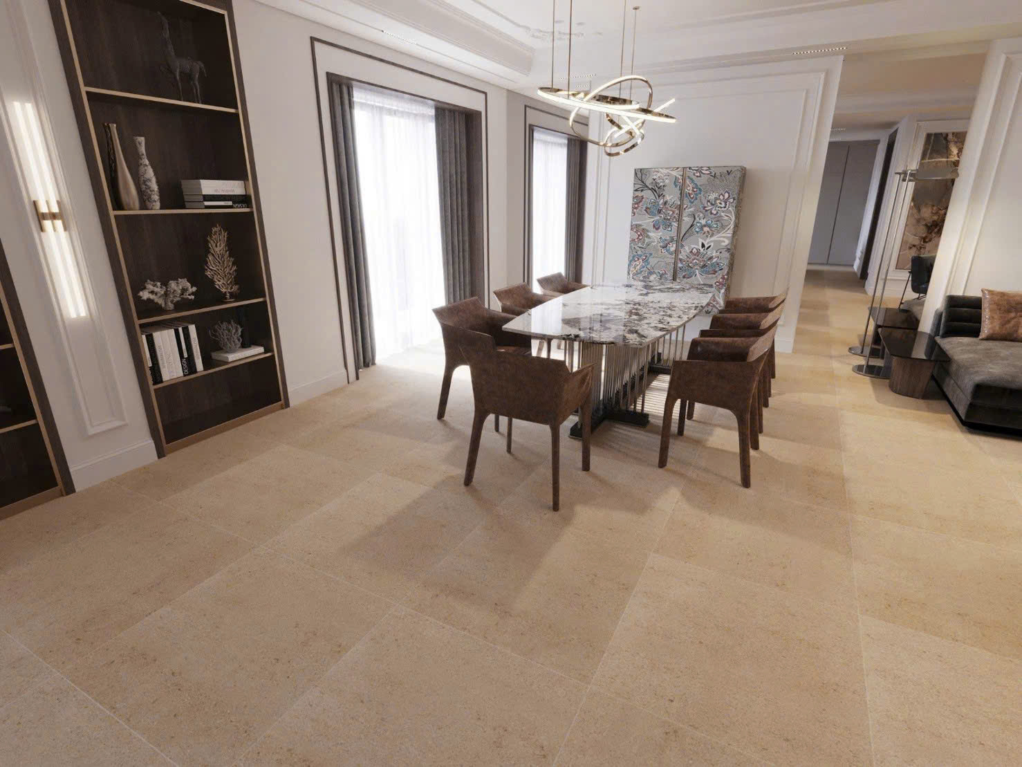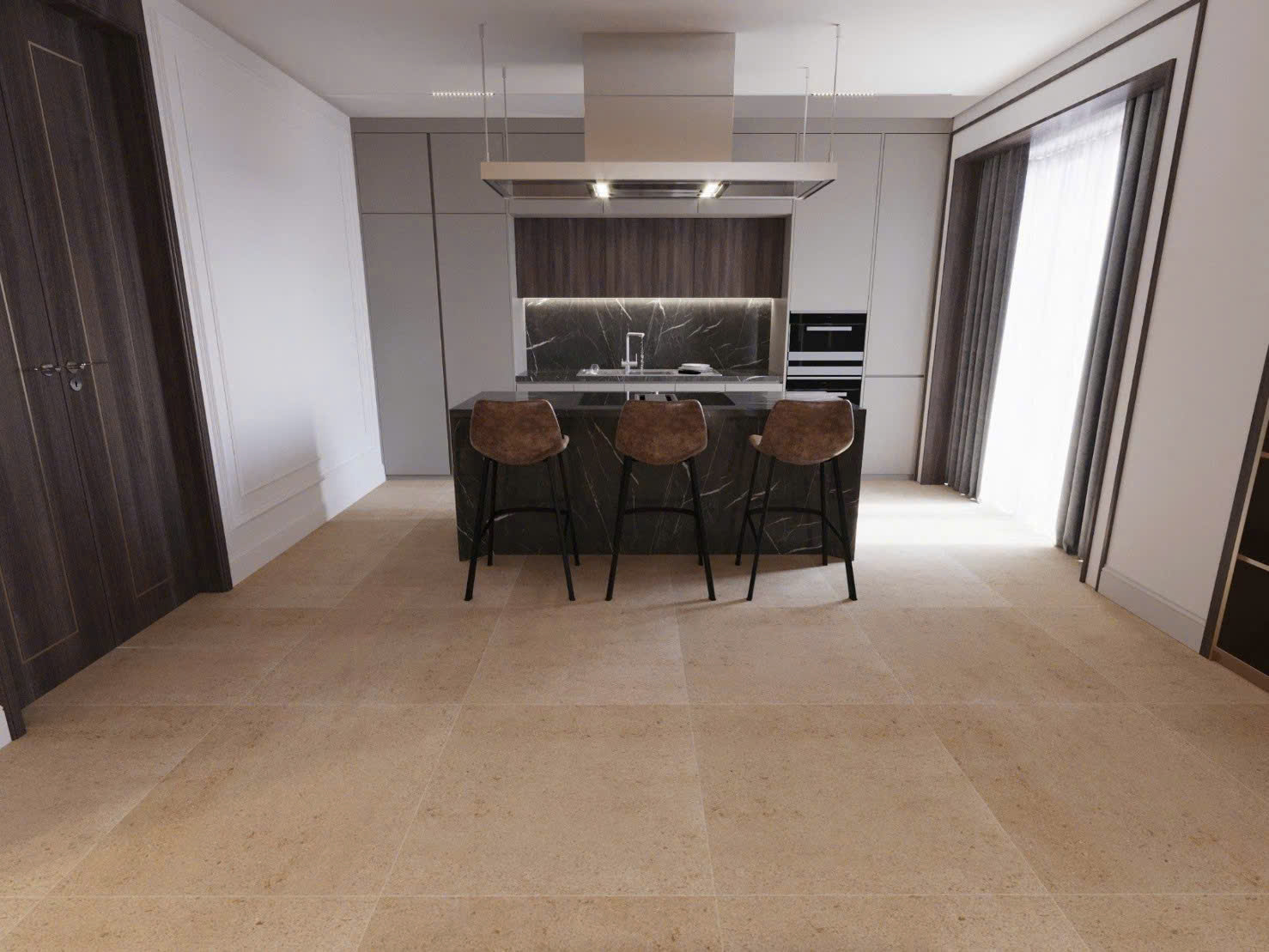 Gạch 80×80 giúp giảm số lượng đường ron, tạo bề mặt liền mạch, giúp không gian trở nên rộng rãi, hiện đại và cao cấp hơn.