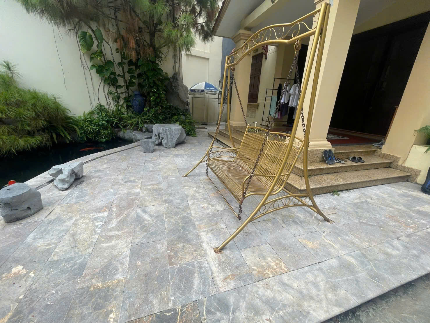 Màu sắc tự nhiên, hài hòa với cây xanh và không gian ngoài trời, tạo cảm giác mộc mạc nhưng vẫn sang trọng.