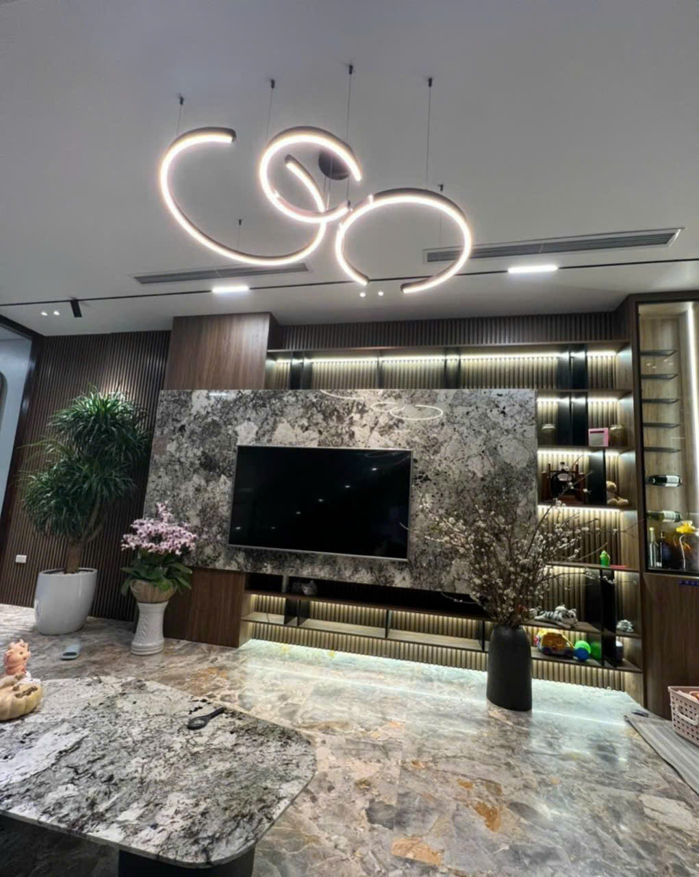 Đá tự nhiên hoặc đá nhân tạo có khả năng chịu lực tốt, ít bị trầy xước, không cong vênh hay nứt vỡ như nhiều vật liệu khác. Đây là lựa chọn lý tưởng cho khu vực có mật độ đi lại cao như phòng khách.
